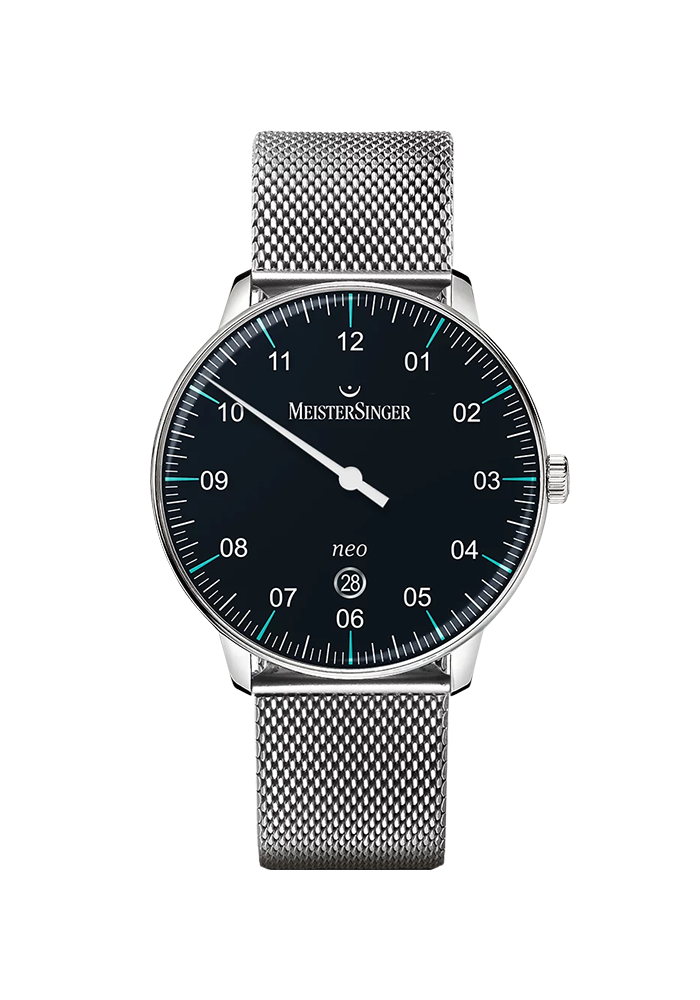 Zifferblatt schwarz mit azurblau
